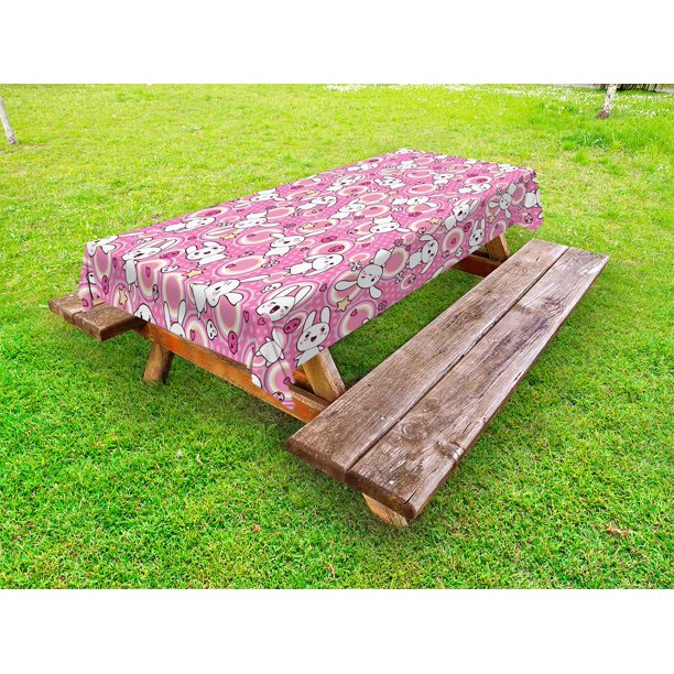 Anime Outdoor Tablecloth Funny Kawaii Illustration With Rabbits Funky Cute Animals Bunnies Kids Humor Print Decorative Washable Fabric Picnic Tablecloth 58 X 120 Inches White Pink By Ambesonne Walmart Com