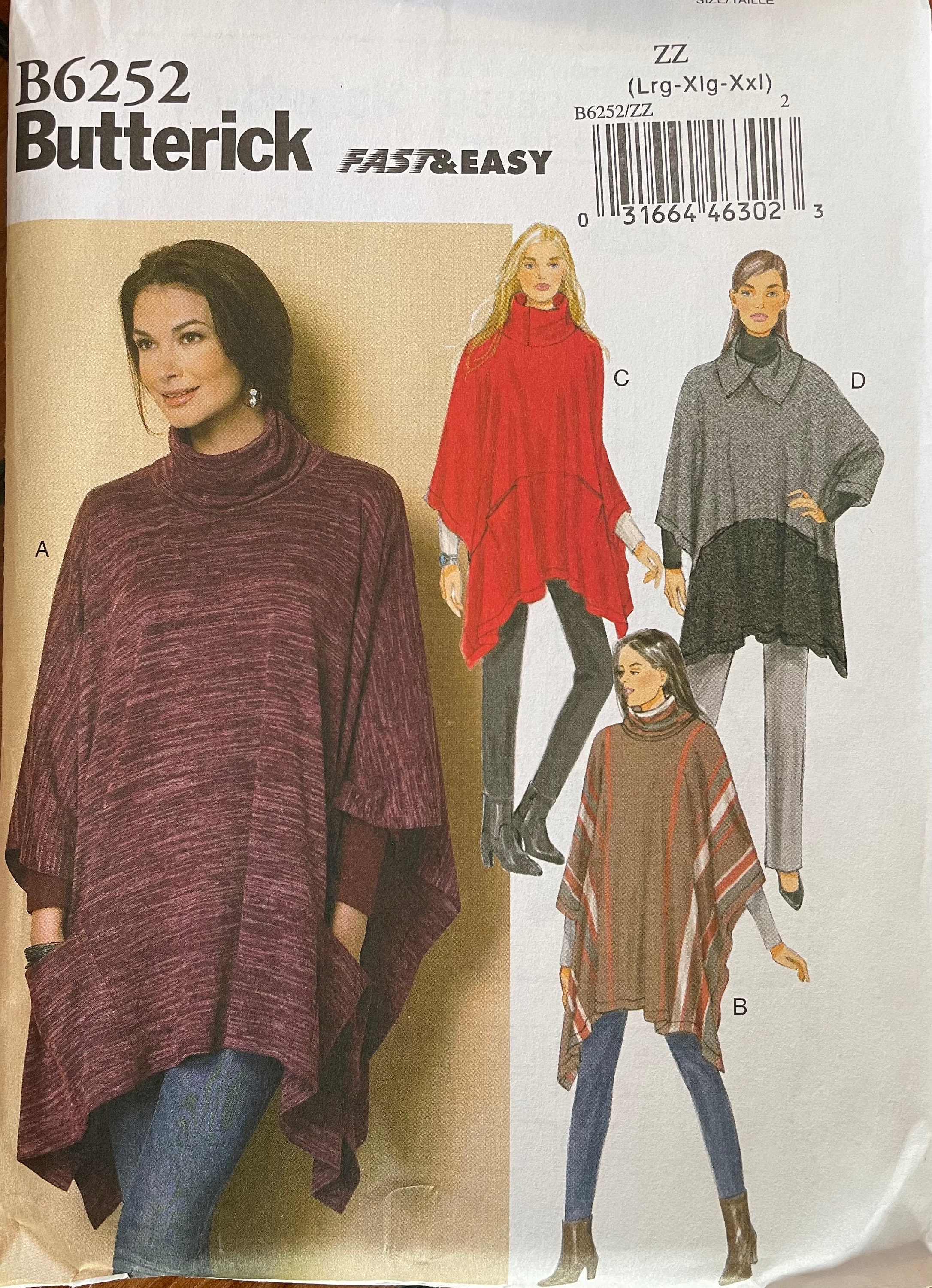 Butterick B6252 Misses Poncho Sewing Pattern Uncut Size Etsy